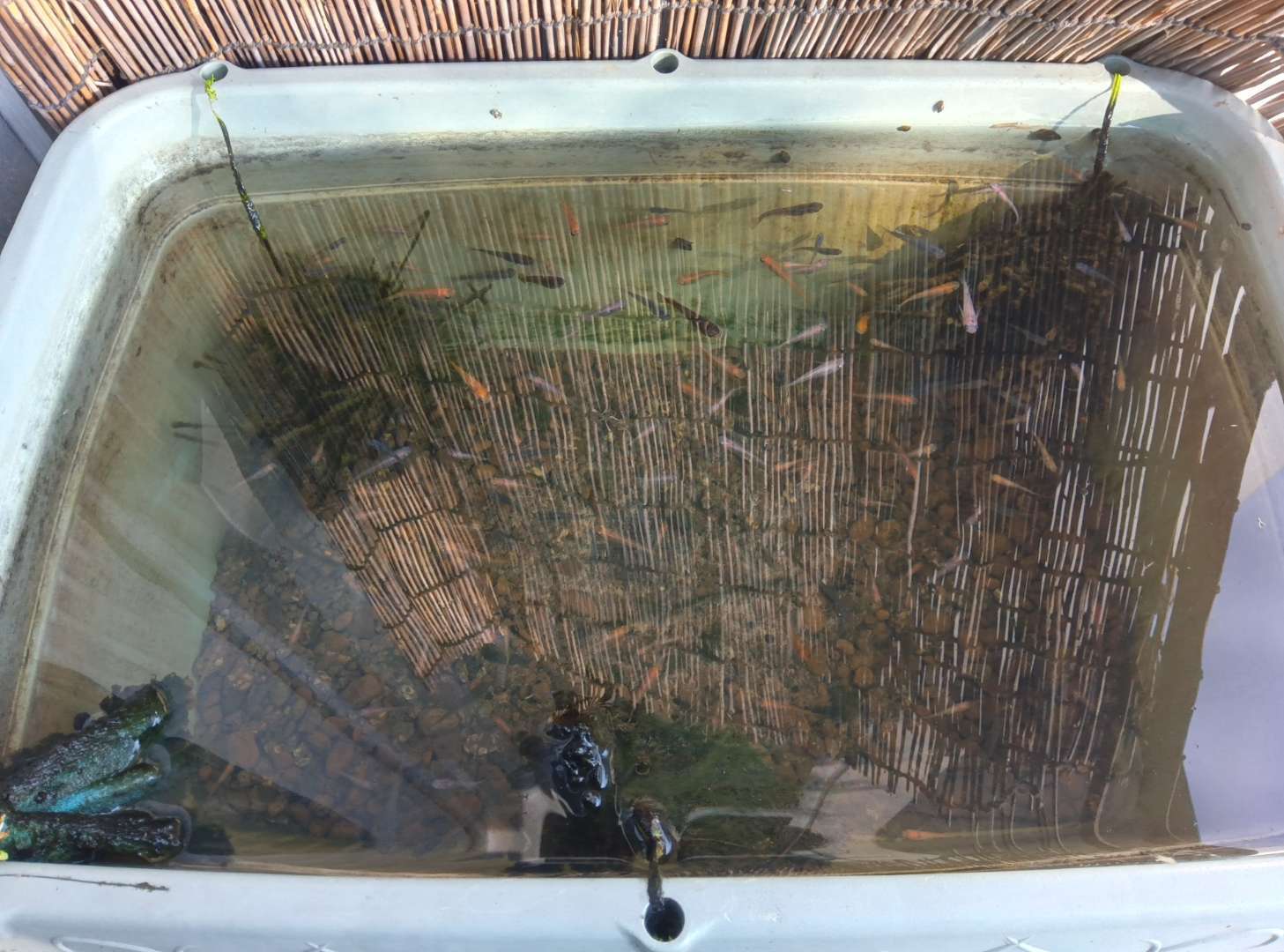 メダカちゃんの水を入れ替えたら気持ち良く泳いでいます。